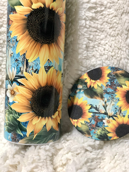 Sunflower and Barbwire 20oz. Tumbler Cup and Coaster